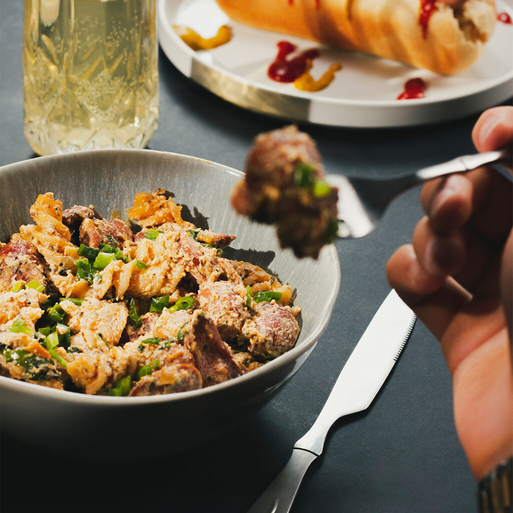 მაკარონი სოსისი ივერიითა და სულგუნით